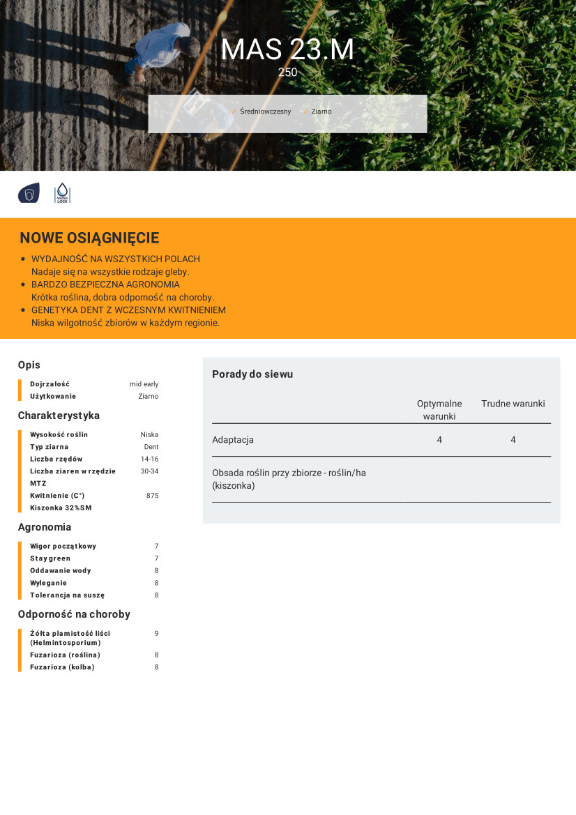 Odmiana o bardzo dobrej odporności na choroby, świetnie tolerująca suszę (8/9).